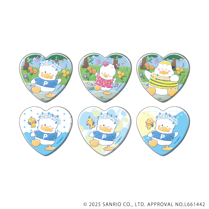 はぴだんぶい_ハート型缶バッジ08/あひるのペックル周年デザイン コンプリートセット(全6種)(グラフアートイラスト)【コンプリートセット/6個入り】