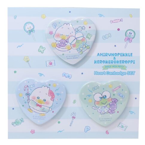 あひるのペックルxけろけろけろっぴ 缶バッジ ハート型カンバッジ3個セット DollyMixぷち サンリオ