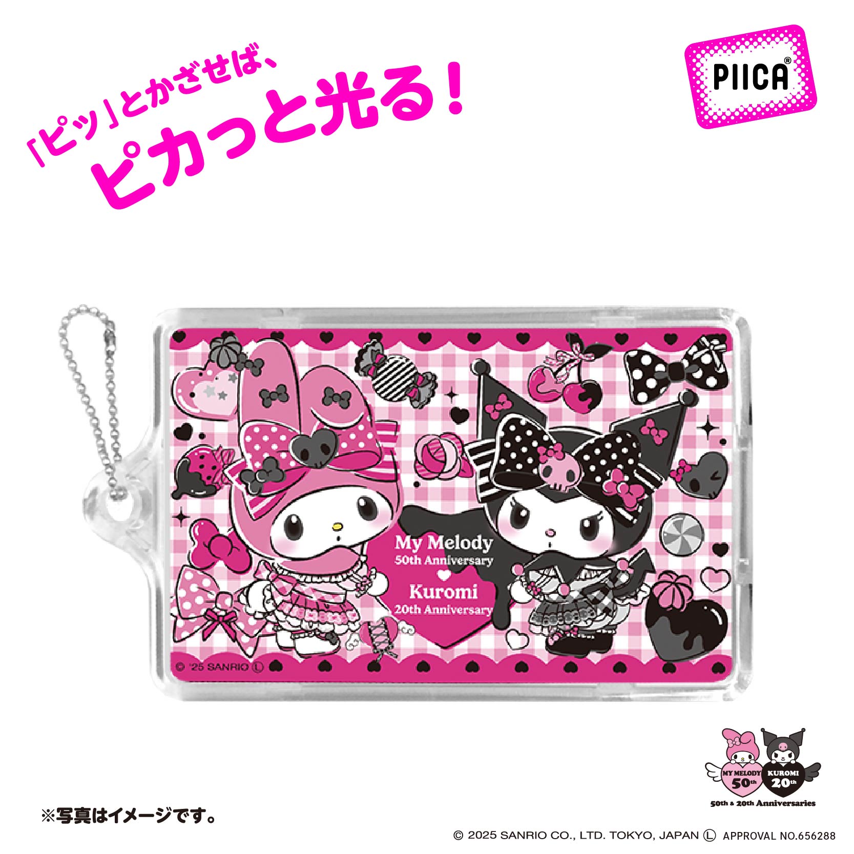 マイメロディ50周年&クロミ20周年 PinkBlackParty PIICA+クリアICカードケース(着せ替えカード付き)⇒ LED内蔵 光るパスケース