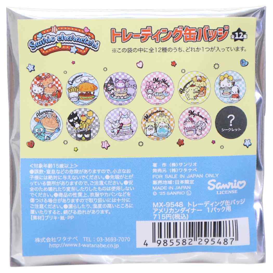 サンリオキャラクターズ 缶バッジ トレーディングカンバッジ 全12種の内どれか1個 アメリカンダイナー