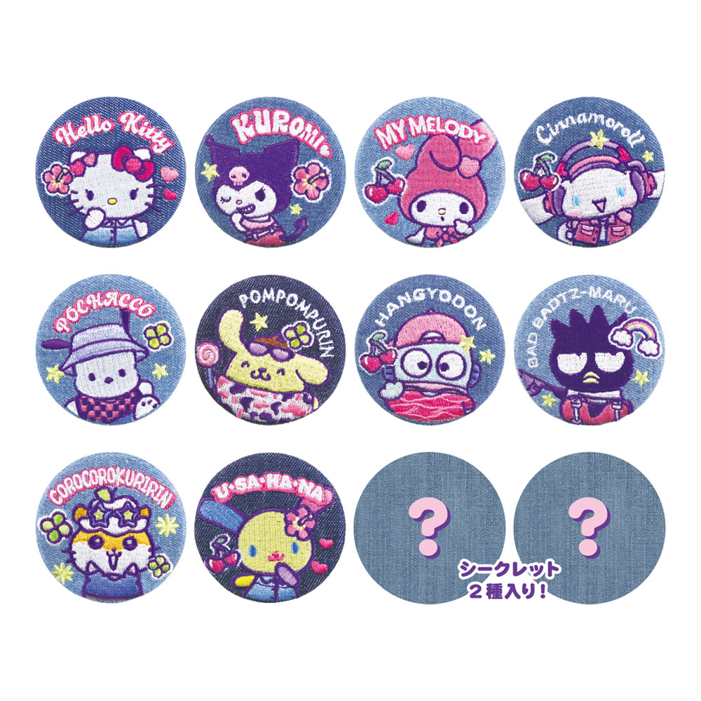 サンリオキャラクターズ_シークレットデニム風刺繍缶バッジ【BOX/12個入り】