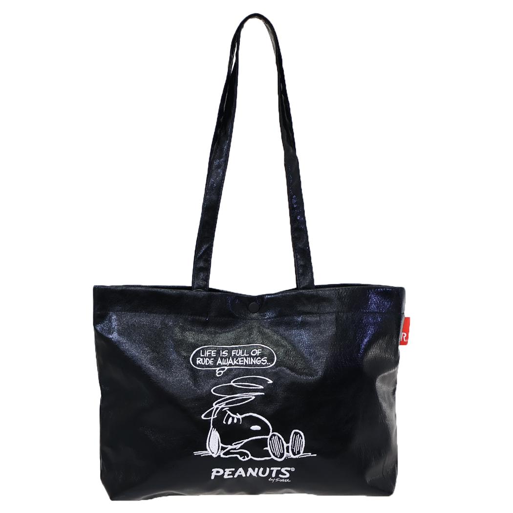 スヌーピー トートバッグ IP.A4w.メタリック.Peanuts-0Q メタリック調生地MEDIUMバッグ Black