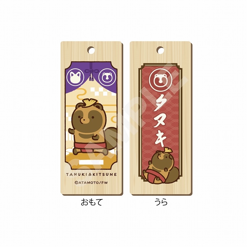 【グッズ-ストラップ】タヌキとキツネ 木札ストラップ /02 タヌキ(相撲)